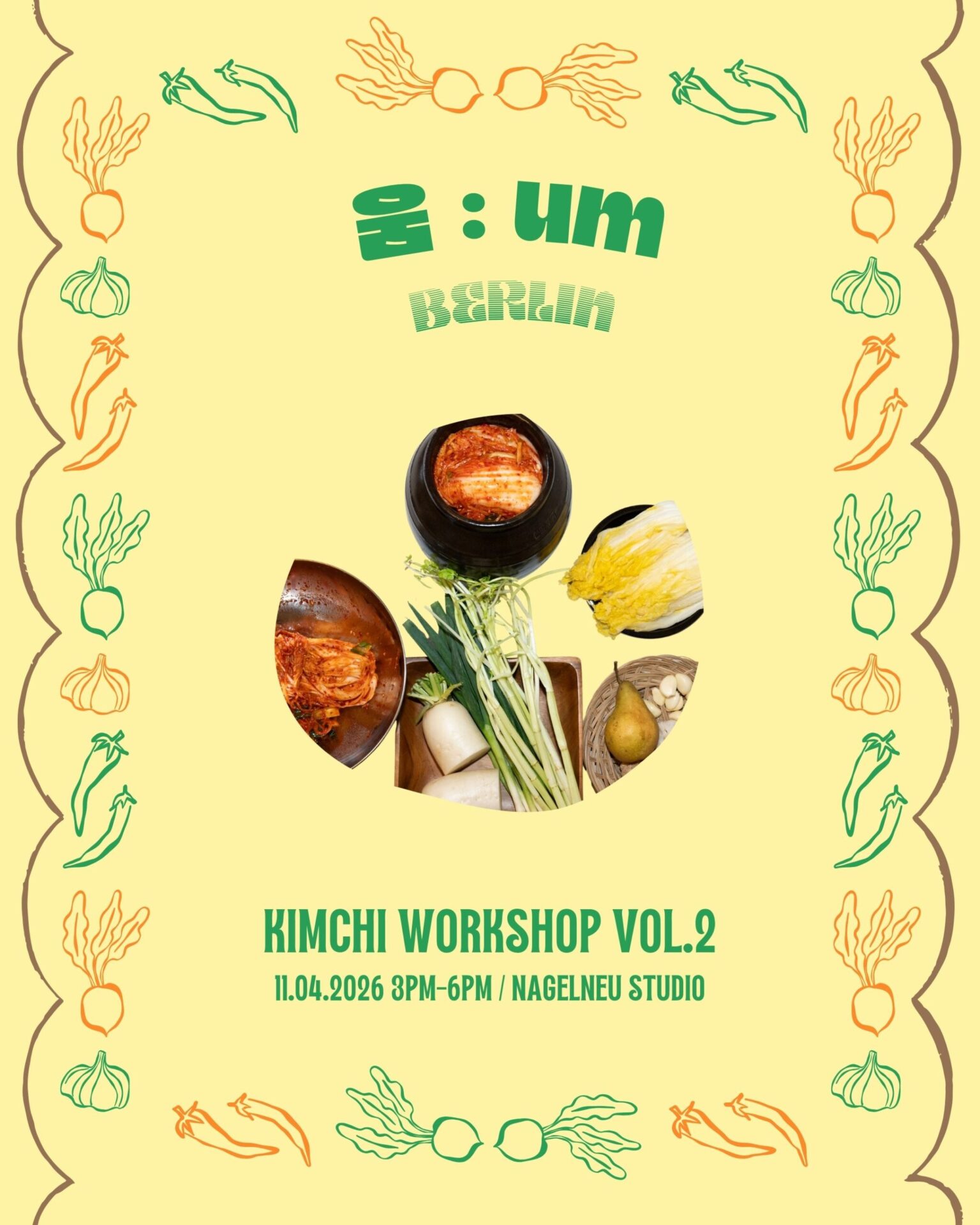 움: UM is a new Berlin-based community food project initiated by two Korean high school friends who reconnect after 15 years to explore Korean food culture in a transnational context. Through local and seasonal ingredients, we experiment with adapting Korean recipes to what grows here—creating sustainable and shared food practices.