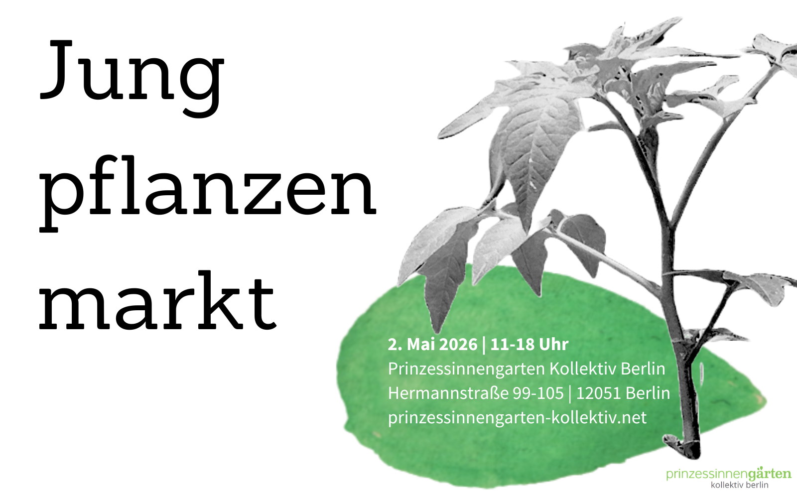 Freut euch auf unseren Jungpflanzenmarkt am Samstag 2. Mai 2026 11-18 Uhr Hermannstraße 99-105 | 12051 Berlin Kommt vorbei und deckt euch für die kommende Gartensaison mit Stauden- und Gemüsejungpflanzen sowie Saatgut verschiedener Händler*innen ein! Details folgen! Der Eintritt ist frei – wir freuen uns auf deinen Besuch |
