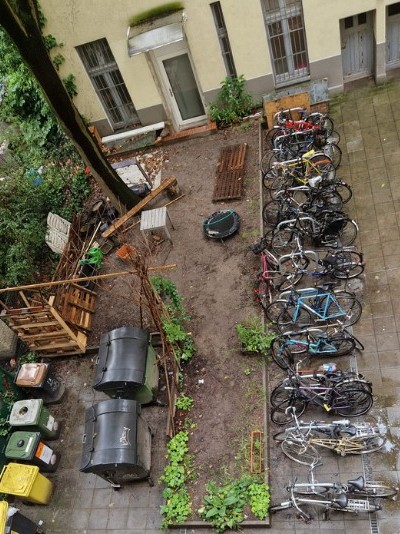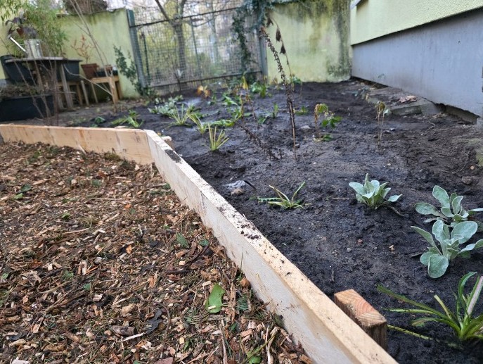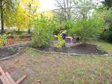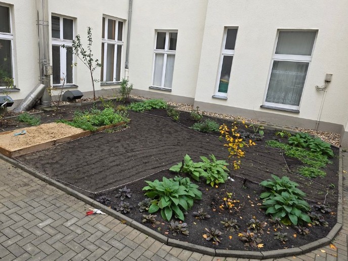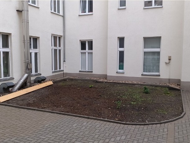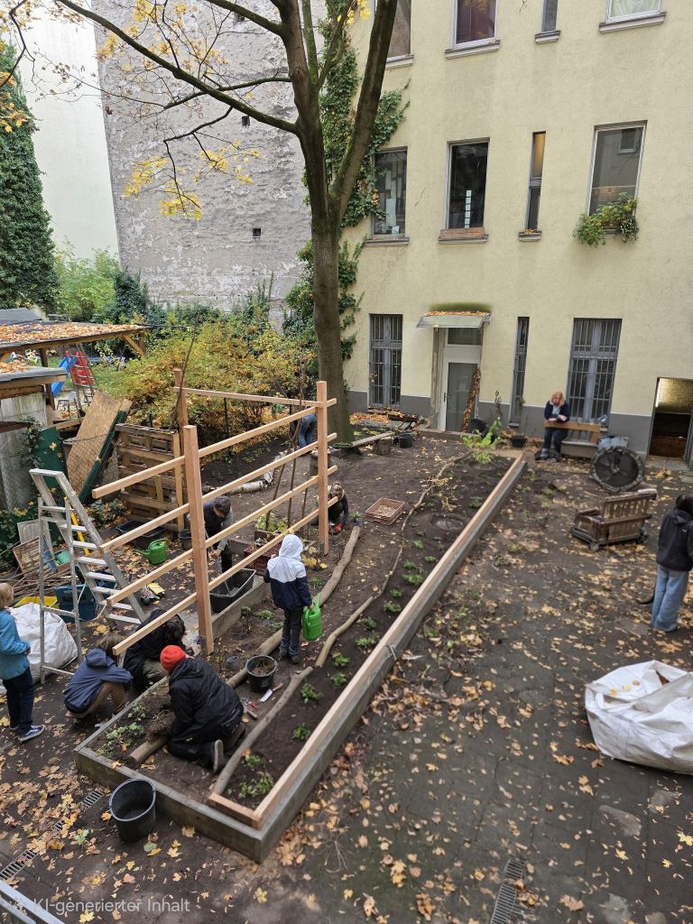 So wurden gemeinschaftlich etliche Meter Grasnarbe entfernt, viele, viele Kubikmeter Erde aufgetragen und rund 950 Stauden in die Erde gebracht. Die Ergebnisse können sich sehen lassen: es wurden Aufenthaltbereiche geschaffen, biodiverse Staudenbeete angelegt, Rankgerüste gebaut und vor allem ein ökologischer Mehrwert in der Neuköllner Hinterhoflandschaft geschaffen.